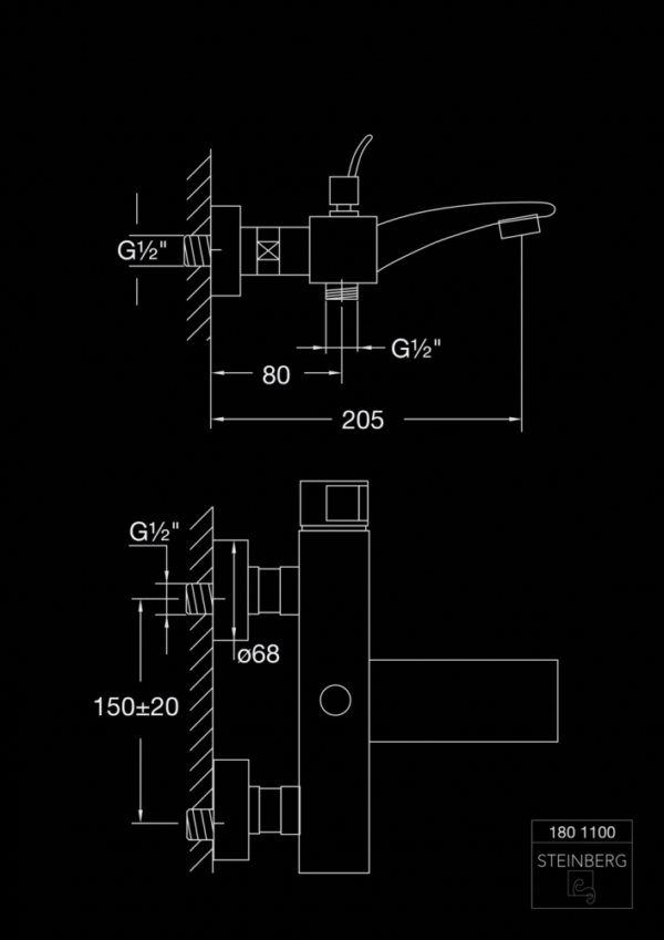 180 1100 EXPOSED SINGLE LEVER MIXER FOR BATHTUB