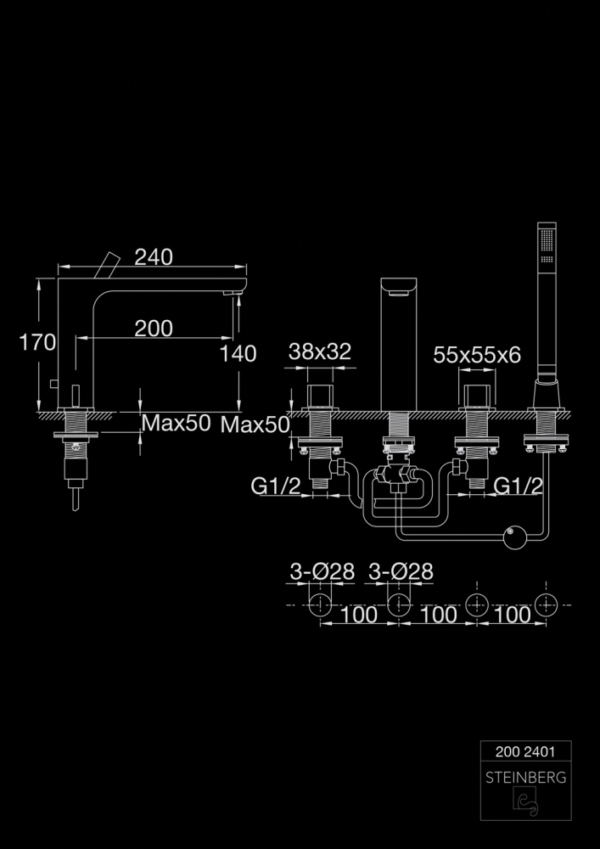 200 2401 4-HOLE DECK MOUNTED MIXER