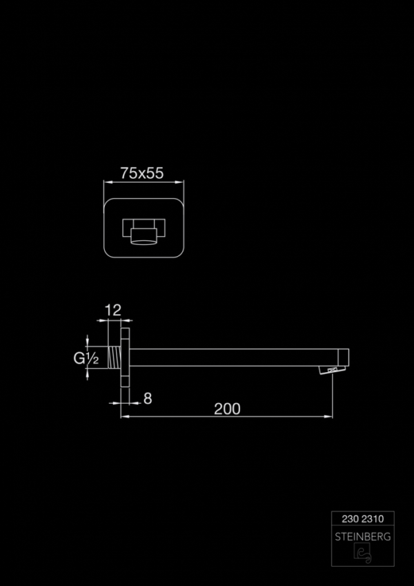 230 2310 WALL SPOUT FOR BASIN OR BATHTUB projection 200 mm, chrome