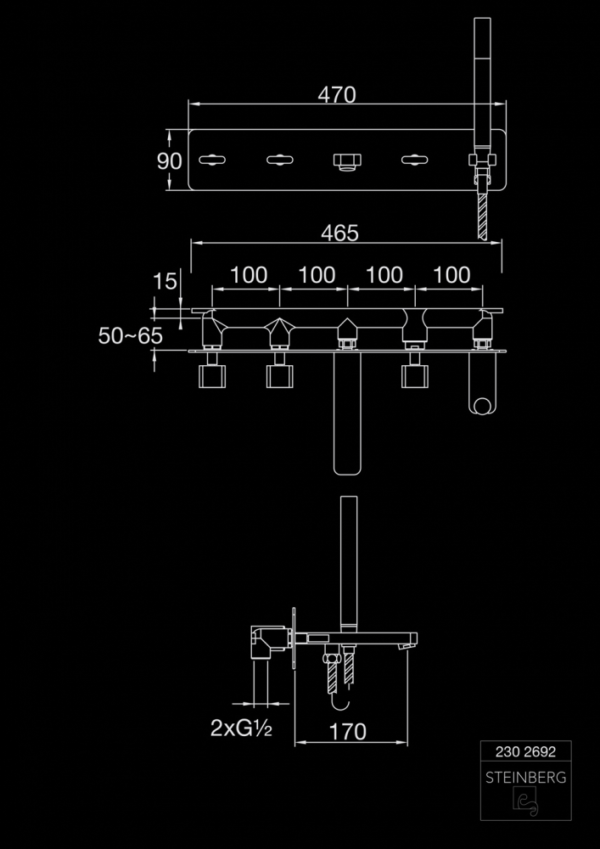 230 2692 5-HOLE WALL MOUNTED BATH MIXER