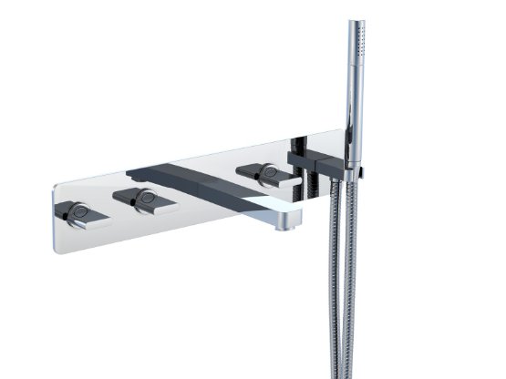 230 2692 5-HOLE WALL MOUNTED BATH MIXER with concealed body, with 90° ceramic headparts, with diverter and hand shower, intrinsically safe against backflow, projection 170 mm, chrome